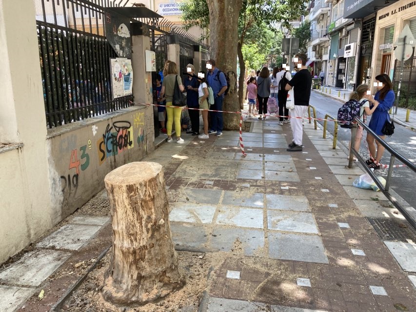 Ούτε η Προξένου Κορομηλά γλίτωσε από την δενδροκτόνα επιχείρηση του δημάρχου. Τρία δέντρα κόπηκαν σήμερα το πρωί δίπλα σε δημοτικό σχολείο με τα παιδιά να βρίσκονται τριγύρω και ενώ δεν είχε παρθεί κανένα μέτρο ασφάλειας. Και αυτό ενώ όλοι γνώριζαν ότι αύριο κλείνουν τα σχολεία.