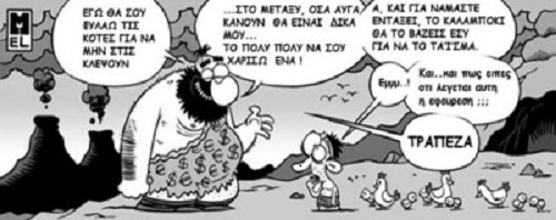 Η εφημερίδα “ΜΑΚΕΔΟΝΙΑ” (που έχει απλήρωτους 11 μήνες τους εργαζόμενούς της, προχωρά σε νέες απολύσεις, προσπαθεί να τους επιβάλλει ατομικές συμβάσεις και απειλεί με μηνύσεις όσους συνδικαλιστές εργαζόμενους αντιστέκονται) καλεί τους επιχειρηματίες (που έχουν γίνει πρωταθλητές των απολύσεων, της ελαστικής και απλήρωτης εργασίας…), τους εκπροσώπους κυβέρνησης, μνημονιακών κομμάτων, Ε.Ε. και Κεντρικών Τραπεζών (που με τα μνημόνια και την πολιτική τους έχουν οδηγήσει 1,5 εκατομ. εργαζόμενους στην ανεργία, έχουν βάλει λουκέτο σε χιλιάδες μικρά μαγαζιά κι επιχειρήσεις, έχουν βυθίσει τη χώρα στη φτώχεια και την εξαθλίωση…) και τις ελληνικές τράπεζες (που αφού καρπώθηκαν 280 κρατικά, δηλ. δικά μας, δις ευρώ τώρα εξασκούνται στο ευγενές έργο της αρπαγής της λαϊκής κατοικίας και περιουσίας…) να συζητήσουν για την “ανάπτυξη” και την “επιχειρηματικότητα”…
