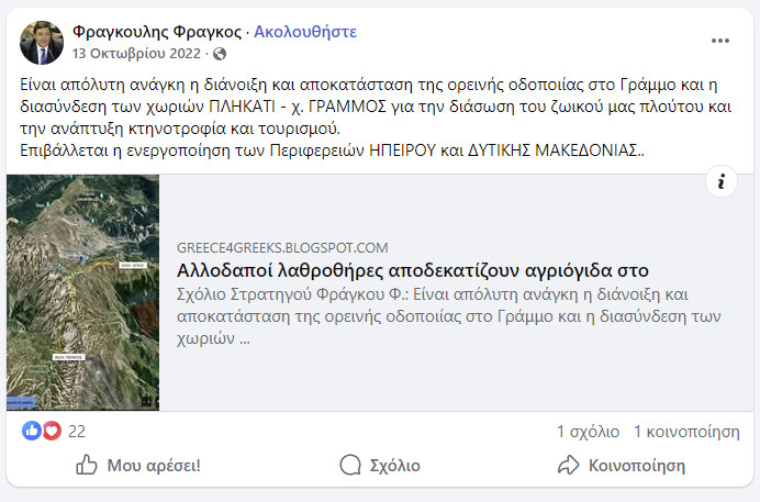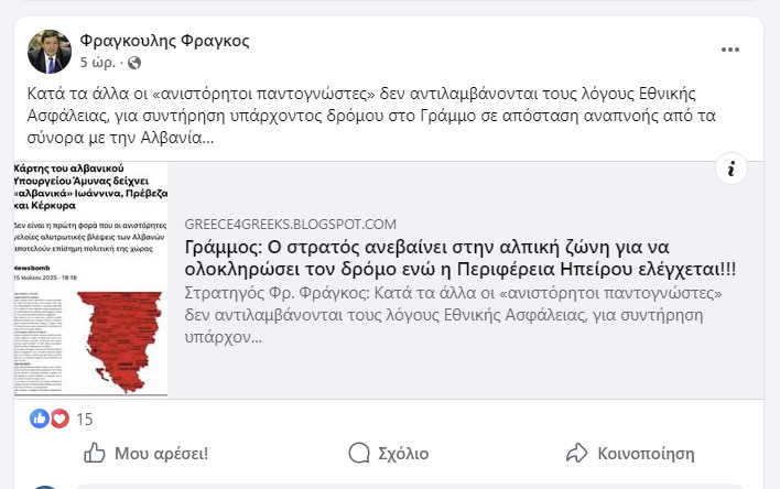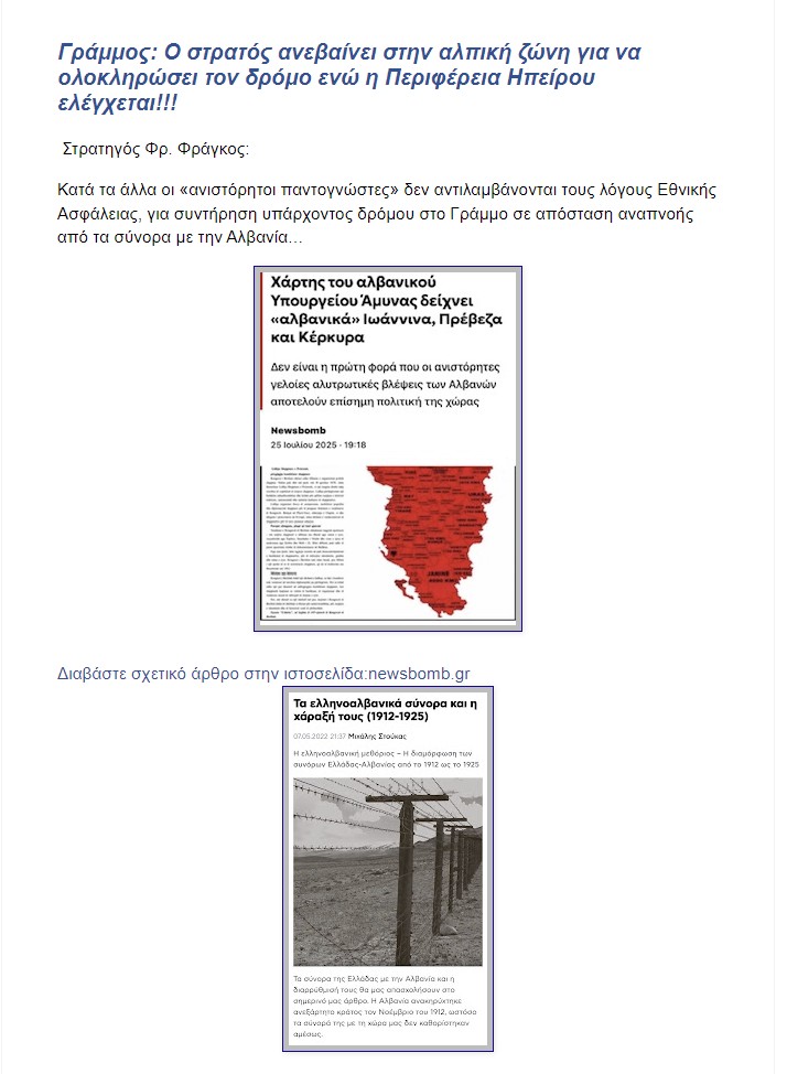 Σημαντικά στοιχεία για τις σκοπιμότητες που ενδεχομένως εξυπηρετεί η διάνοιξη του δρόμου από τον στρατό στον Γράμμο για την οποία πλήθος περιβαλλοντικών οργανώσεων και κατοίκων εκφράζουν ξανά την ανησυχία τους, αναδεικνύει ανακοίνωση της Λαϊκής Συσπείρωσης Κόνιτσας.
