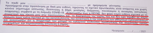 Πέρα από αυτό, αντί οι ίδιοι να δεσμεύονται για τα κατάλληλα μέτρα προστασίας κατά της πανδημίας, μεταφέρουν την ευθύνη στους ίδιους τους γονείς με μια «υπεύθυνη δήλωση»!