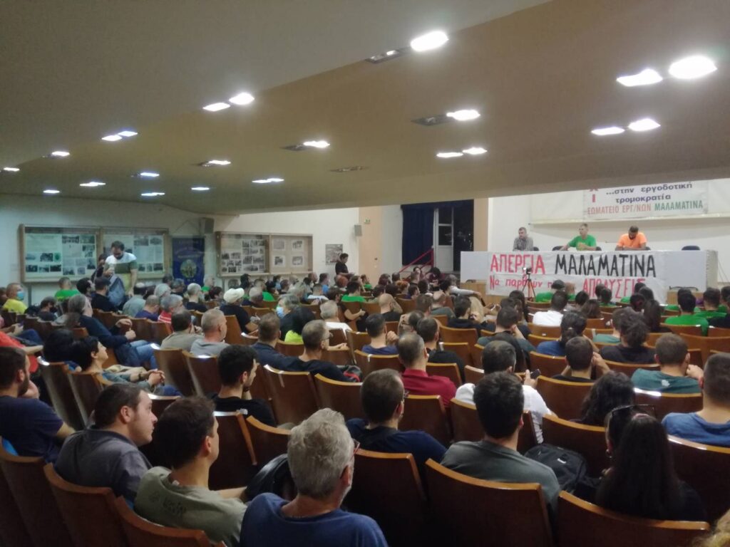 Η άμεση γενική συνέλευση του σωματείου των εργαζομένων στη Μαλαματίνα πήρε απόφαση για συνέχιση των απεργιών ως τις 15 του Οκτώβρη, ενώ για αύριο, Δευτέρα, πάρθηκε απόφαση από την Πανελλήνια Ομοσπονδία Εργαζομένων Εμφιαλωμένων Ποτών 24ωρη για απεργία και συγκέντρωση στις 06.00 έξω από το εργοστάσιο.