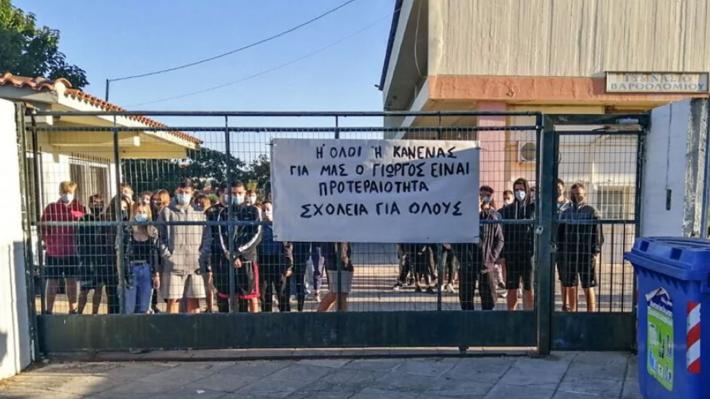Χαρακτηριστικό είναι το παράδειγμα μαθητών του Γενικού Λυκείου Βαρθολομιού οι οποίοι έκαναν αποχή από τα μαθήματά τους την προηγούμενη εβδομάδα, γιατί ο συμμαθητής τους, Γιώργος Καλαρύτης, που γεννήθηκε με σύνδρομο Jacobsen, παραμένει χωρίς συνοδό (ΕΒΠ) και αναγκάζεται είτε να μην πηγαίνει σχολείο είτε, όταν πηγαίνει, να αναλαμβάνουν την ευθύνη της φροντίδας του οι συμμαθητές του και οι εκπαιδευτικοί. Με πανό «’Η όλοι ή κανένας. Για μας ο Γιώργος είναι προτεραιότητα. Σχολεία για όλους», οι μαθητές συμπύκνωσαν τόσο την δύναμη της κοινωνικής αλληλεγγύης όσο και την βαρύτητα των κυβερνητικών ευθυνών αφού όπως σημειώνουν τα σχετικά ρεπορτάζ, από την αρχή της χρονιάς η Διεύθυνση Εκπαίδευσης έχει ζητήσει τρεις φορές ΕΒΠ για το ΓΕΛ Βαρθολομιού, όμως δεν έχει σταλεί εκπαιδευτικός.