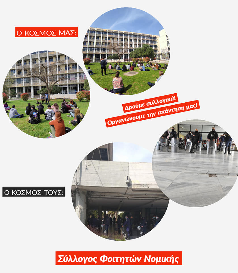 Η πολύμορφη δραστηριότητα, η ζωντανή παρουσία των φοιτητών είναι που μπορεί να εμποδίσει στη πράξη την εφαρμογή του νέου απαράδεκτου νόμου Κεραμεως – Χρυσοχοΐδη, είναι αυτή που απαντάει στη καταστολή!