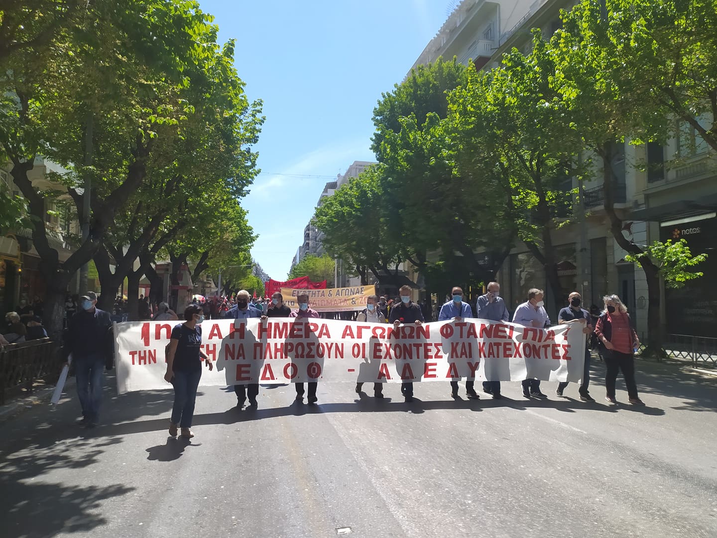 Τέλος, συγκέντρωση και πορεία πραγματοποίησαν οι δυνάμεις της ΕΔΟΘ/ ΑΔΕΔΥ και του ΣΥΡΙΖΑ, από το μνημείο του Εργάτη, σε κεντρικούς δρόμους της πόλης και με κατάληξη στο μνημείο του Λαμπράκη.