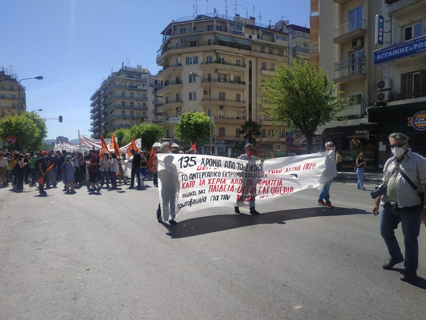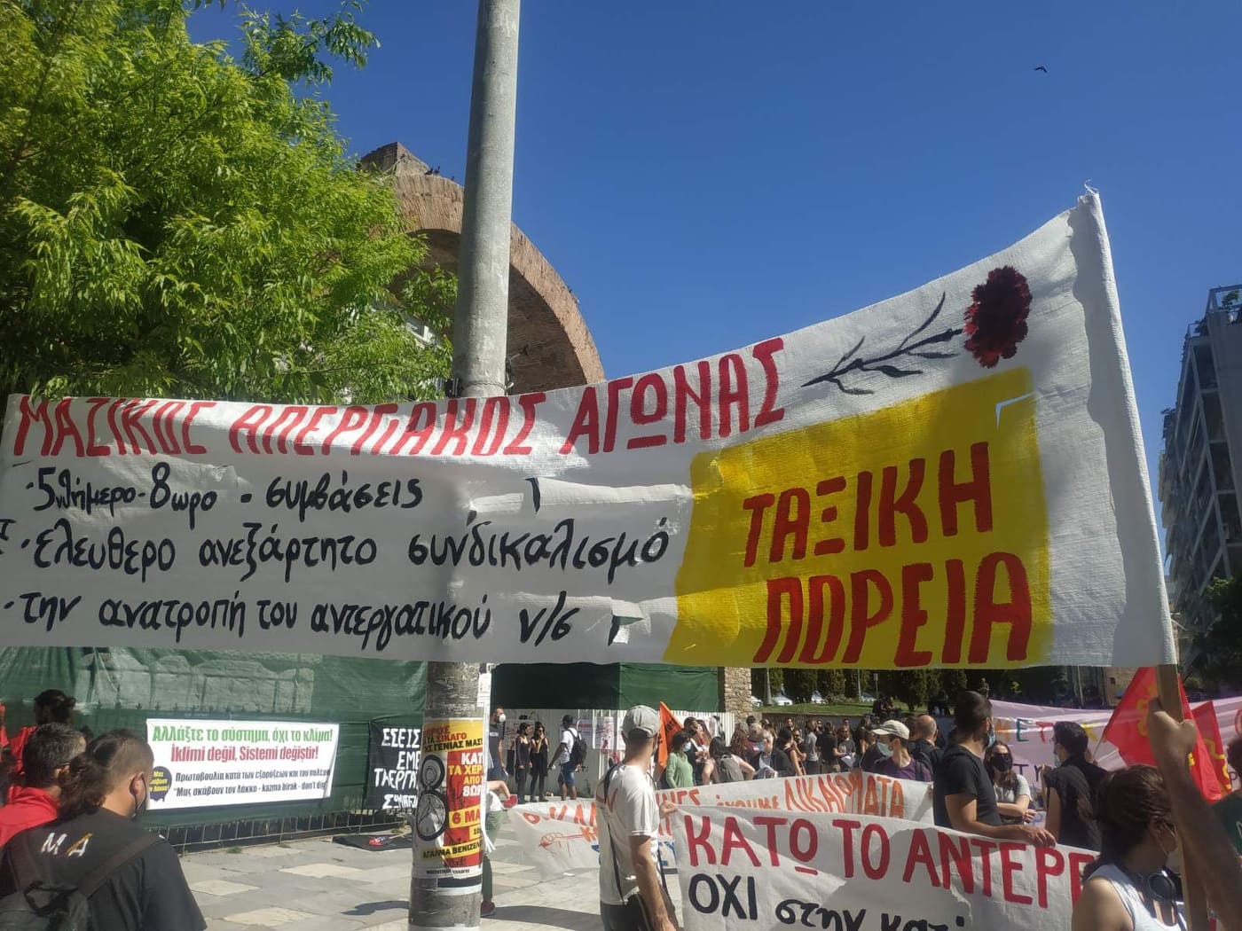 Οργανώσεις και συλλογικότητες από τον χώρο της εξωκοινοβουλευτικής αριστεράς και του α/α χώρου πραγματοποίησαν συγκέντρωση στην Καμάρα, στη συνέχεια προχώρησαν σε πορεία, στην οποία προστέθηκε η συγκέντρωση διαμαρτυρίας οργανώσεων, σωματείων και κομμάτων που βρίσκονταν σε εξέλιξη στη συμβολή των οδών Εγνατίας και Αγίας Σοφίας.