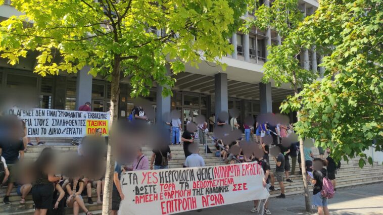 Όπως αναφέρει η Επιτροπή «η αστυνομία χτύπησε την συγκέντρωση διαμαρτυρίας αλληλέγγυων εργαζομένων στον εργαζόμενο των YES στην Θεσσαλονίκη που διεκδικώντας δεδουλευμένα και εφαρμογή της κλαδικής σύμβασης, βρέθηκε κατηγορούμενος από μήνυση του εργοδότη για εκβιασμό σε συνεργασία με την ελληνική αστυνομία. Στο δικαστήριο ο εργαζόμενος και ο συνάδελφος συνδικαλιστής του σωματείου επισιτισμού που συνελήφθησαν μαζί, αθωώθηκαν πανηγυρικά. Μετά το δικαστήριο ο εργοδότης προχώρησε σε απόλυση του συναδέλφου».