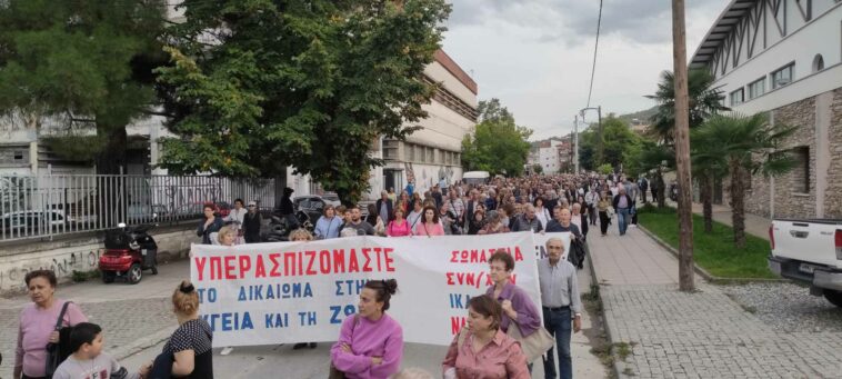 Μαζική πορεία υπεράσπισης του Εθνικού Συστήματος Υγείας πραγματοποιήθηκε το απόγευμα της Τετάρτης στην πόλη της Νάουσας, μετά την κυβερνητική απόφαση να αφαιρέσει το νοσοκομείο της πόλης από την λίστα των άγονων περιοχών.