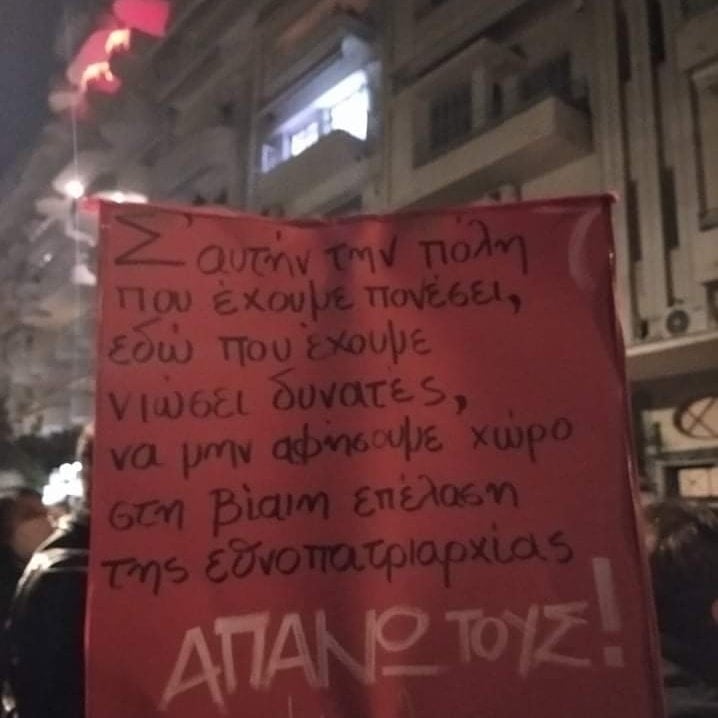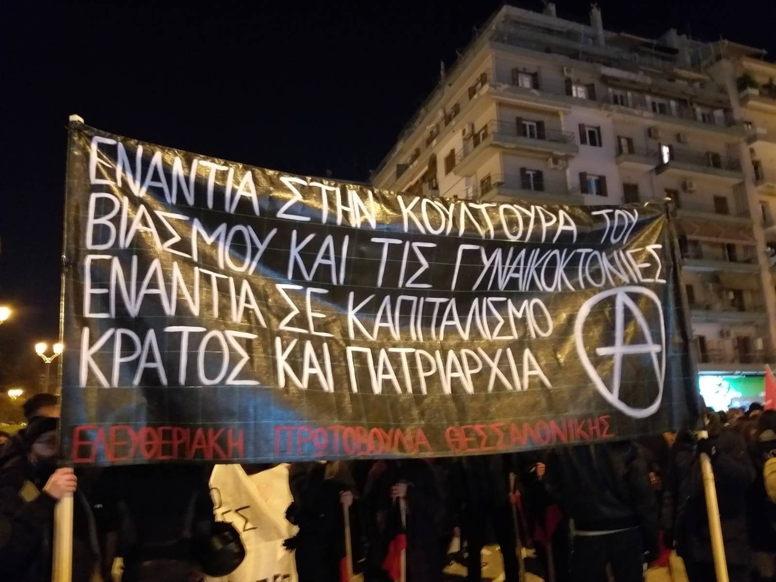 Μαζική φεμινιστική/ αντιπατριαρχική διαδήλωση ενάντια στην κουλτούρα του βιασμού πραγματοποιήθηκε το απόγευμα της Παρασκευής στο κέντρο της Θεσσαλονίκης μετά από κάλεσμα φεμινιστικών συλλογικοτήτων και πολιτικών οργανώσεων.