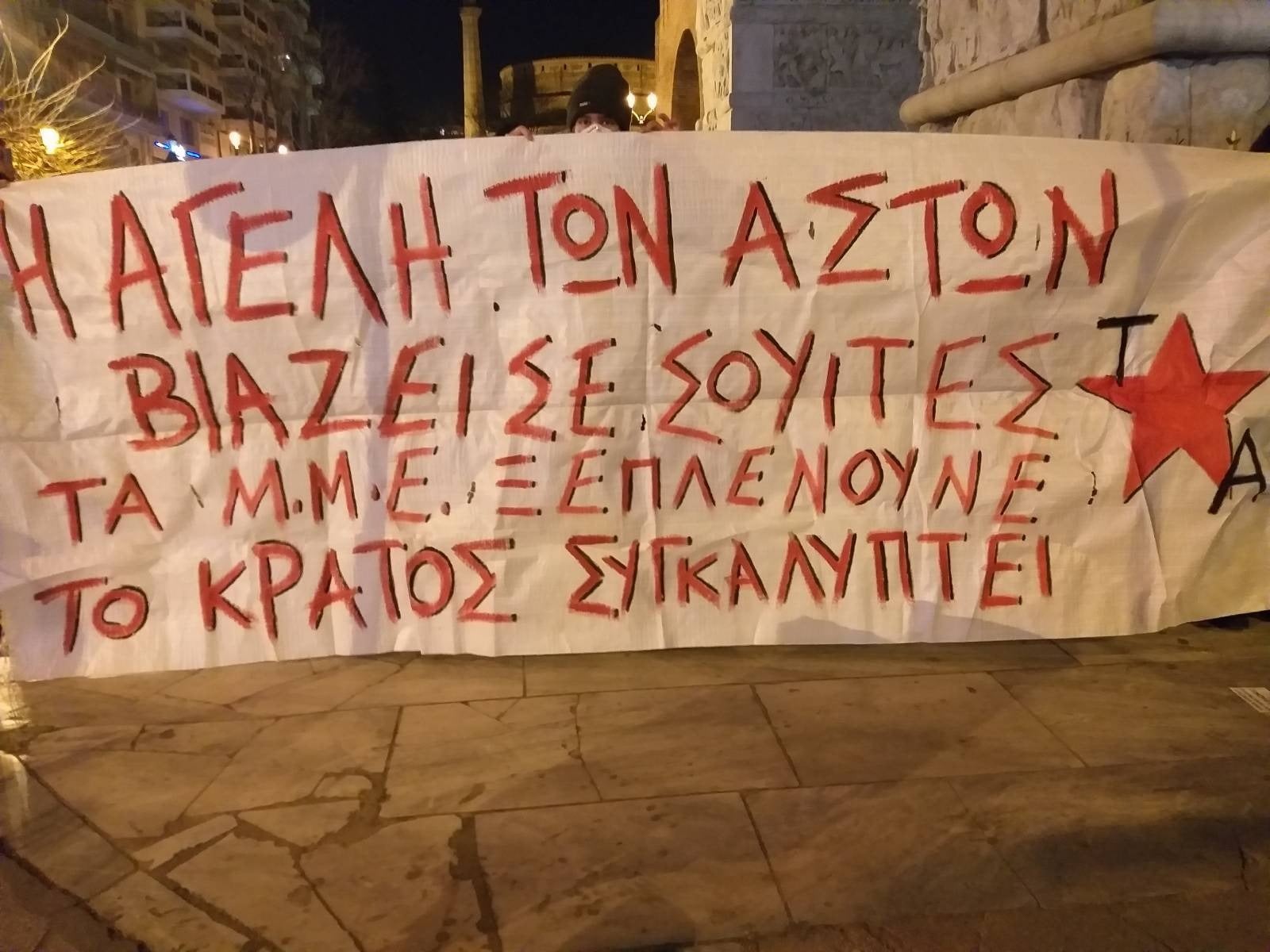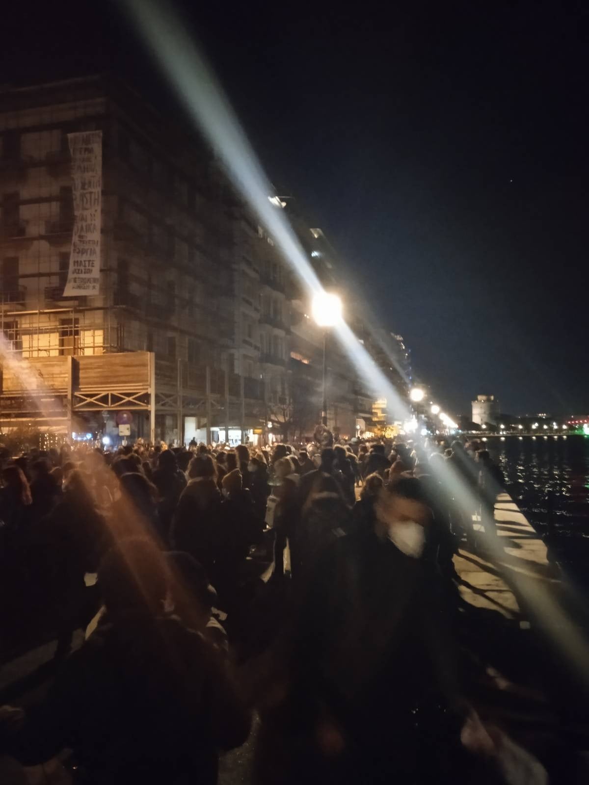 Μάλιστα δυνάμεις των ΜΑΤ απαγόρευσαν στην πορεία να προσεγγίσει το Αστυνομικό Τμήμα του Λευκού Πύργου.