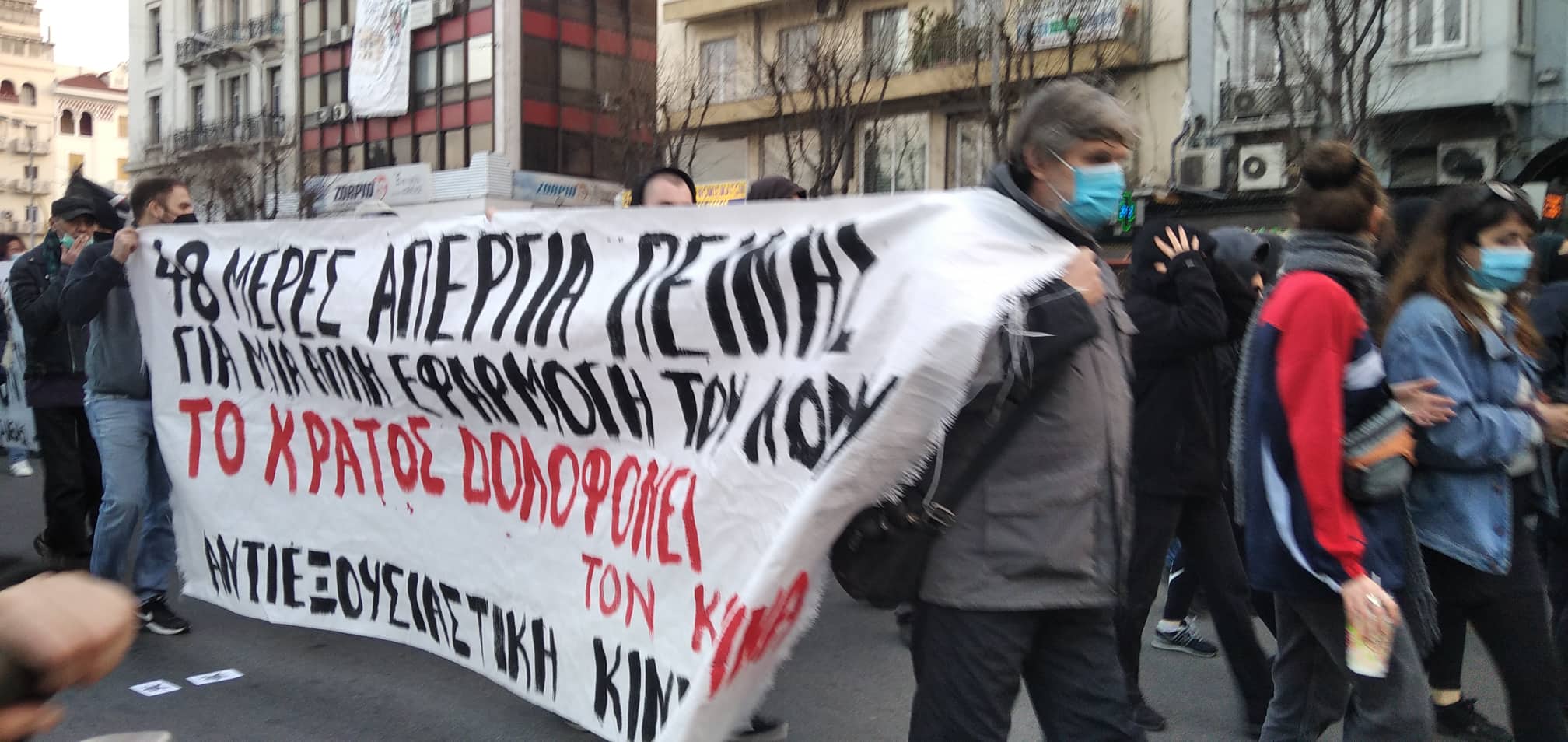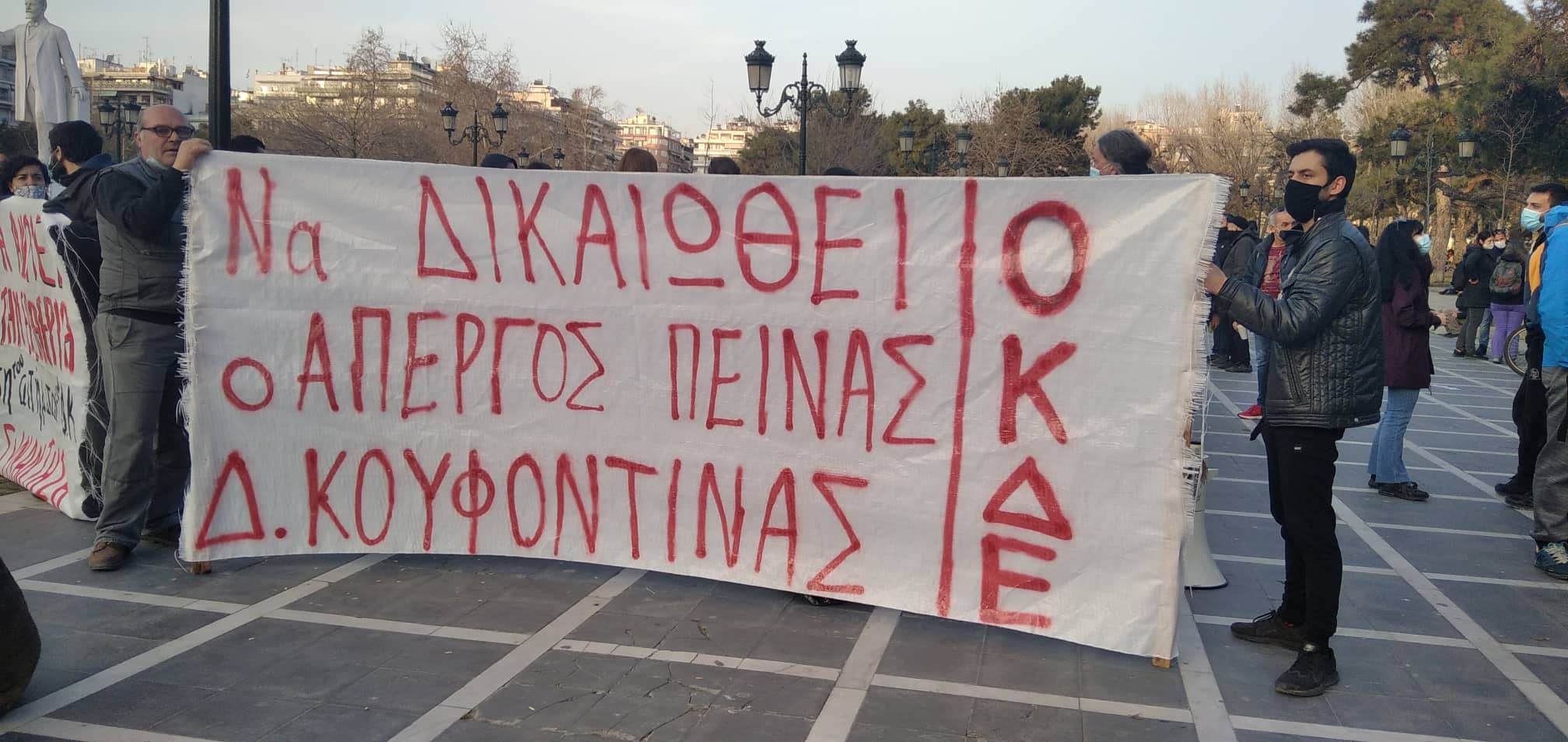 Πορεία αλληλεγγύης στον Δ. Κουφοντίνα πραγματοποιήθηκε το απόγευμα της Τετάρτης στη Θεσσαλονίκη με τη συμμετοχή πολλών οργανώσεων του αντιεξουσιαστικού χώρου και της αριστεράς με αίτημα να μην υπάρξει νεκρός απεργός πείνας και να ικανοποιηθεί το αίτημα του κρατούμενου Δ. Κουφοντίνα να εφαρμοστεί ο νόμος, όπως ψηφίστηκε από την ίδια την κυβέρνηση.