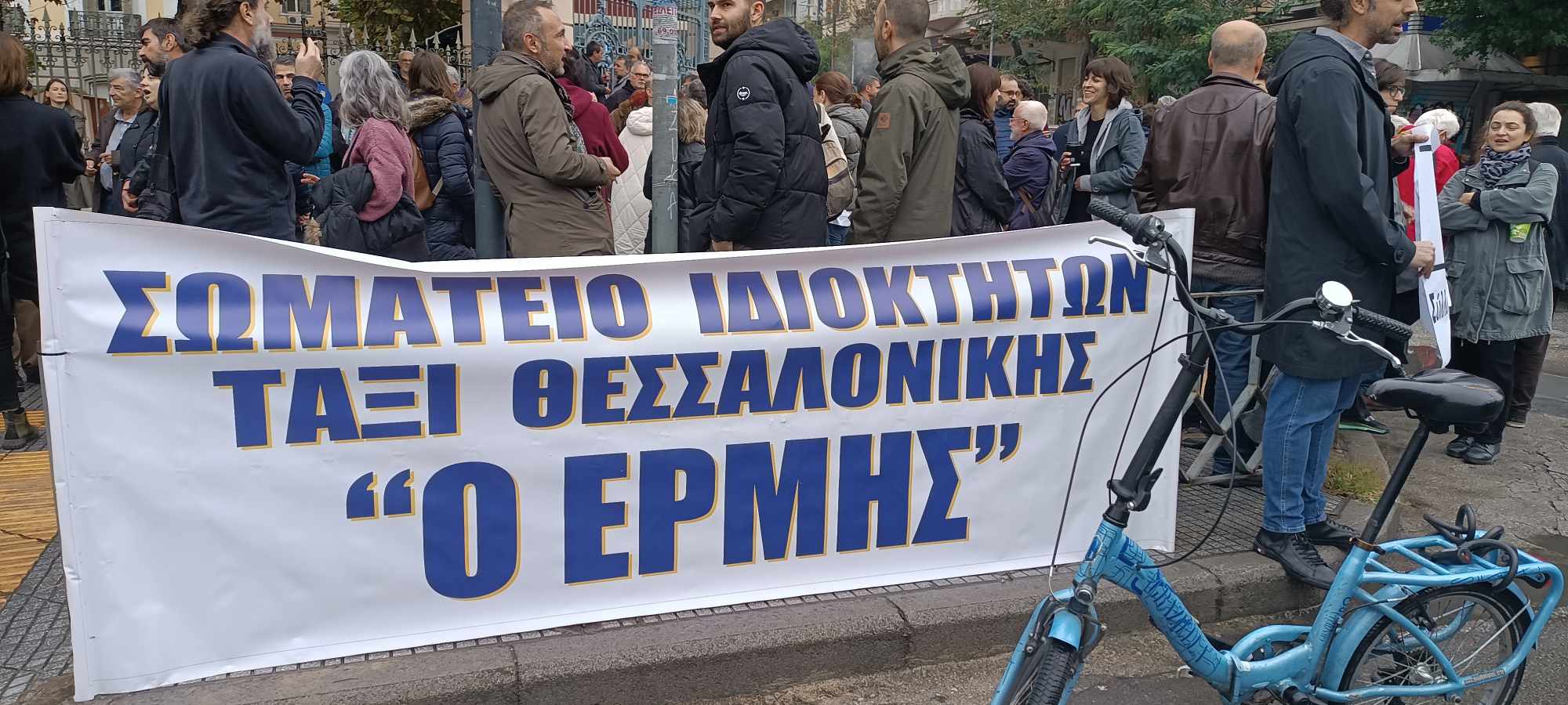 Νωρίτερα επαγγελματίες οδηγοί ταξί συγκεντρώθηκαν οδό Μιχαήλ Ψελλού, πραγματοποιώντας αυτοκινητοπομπή προς το ΥΜΑΘ ζητώντας την απόσυρση του νομοσχεδίου.
