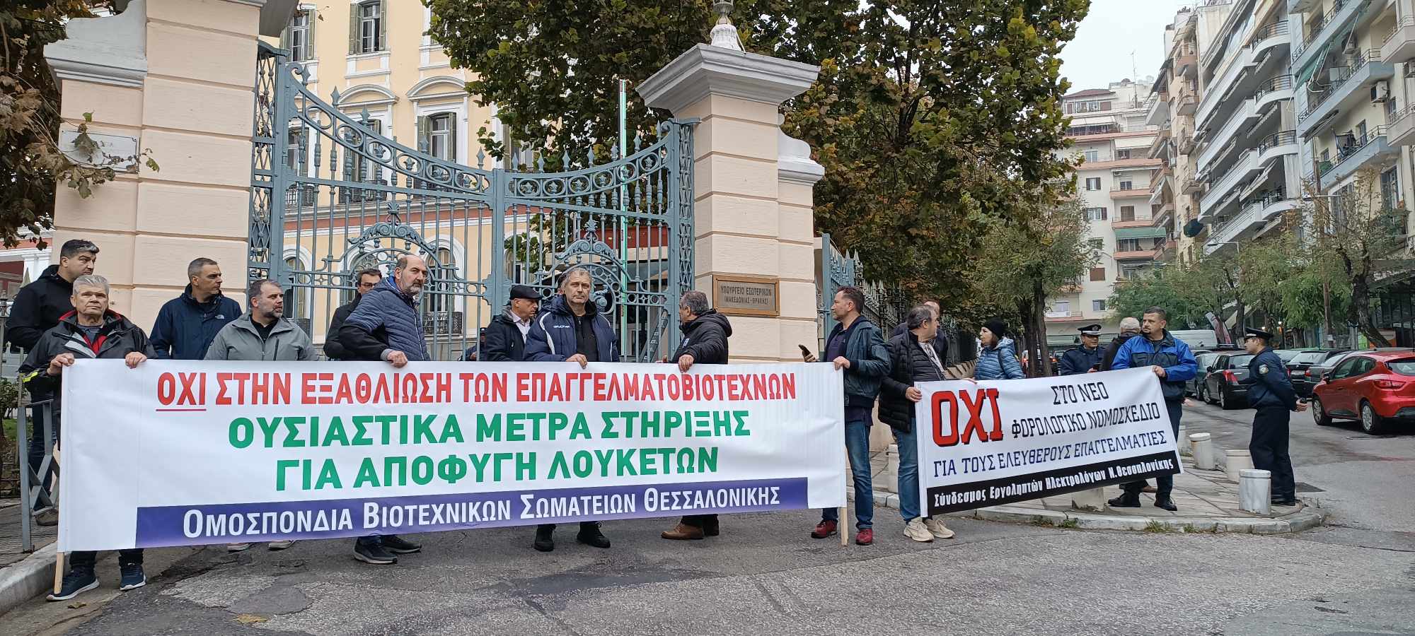 Εκ μέρους της Ομοσπονδίας βιοτεχνικών σωματείων Θεσσαλονίκης ο Βαγγέλης Βαλασίδης σημείωσε ότι το φορολογικό νομοσχέδιο προβλέπει οριζόντια μέτρα που κρύβουν πάντα αδικίες καθώς φορολογεί τους επαγγελματίες που δεν υπάρχουν. «Το αίτημα μας είναι να παρθεί πίσω το νομοσχέδιο για τις αδικίες που κρύβει» σημείωσε ο κ. Βαλασίδης τονίζοντας ότι στον κλάδο τους πλήττονται 4.900 άνθρωποι μεταξύ των οποίων πολλές οικογένειες και ειδικά σε επαρχιακές πόλεις.