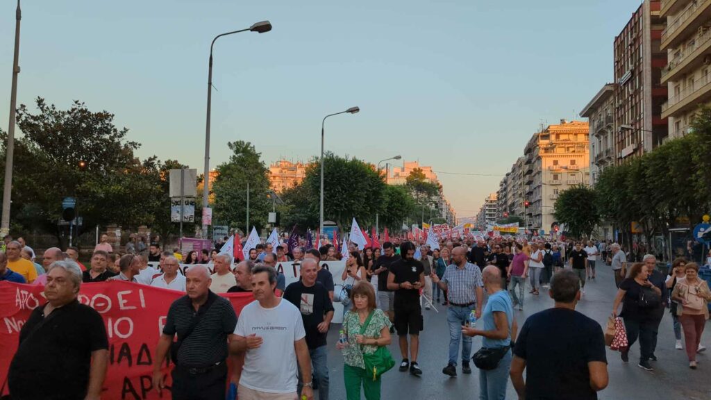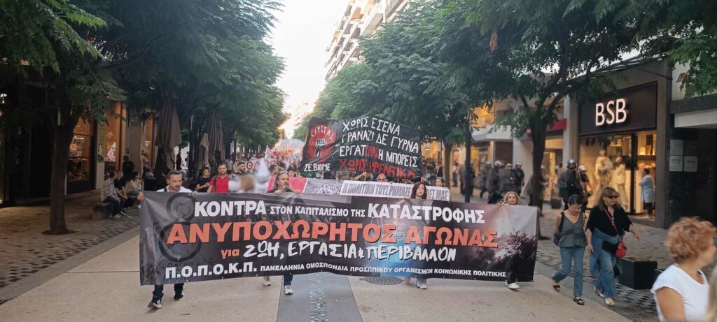 Με επίκεντρο την καταστροφή της φύσης και με το μυαλό στα θύματα των πλημμυρών σε Θεσσαλία και Μαγνησία συνδικάτα, πολιτικές οργανώσεις, σωματεία και συλλογικότητες της αριστεράς και του αντιεξουσιαστικού χώρου διαδήλωσαν το απόγευμα του Σαββάτου στη Θεσσαλονίκη ενάντια στο “κράτος και την κυβέρνηση των δολοφόνων”.
