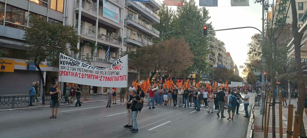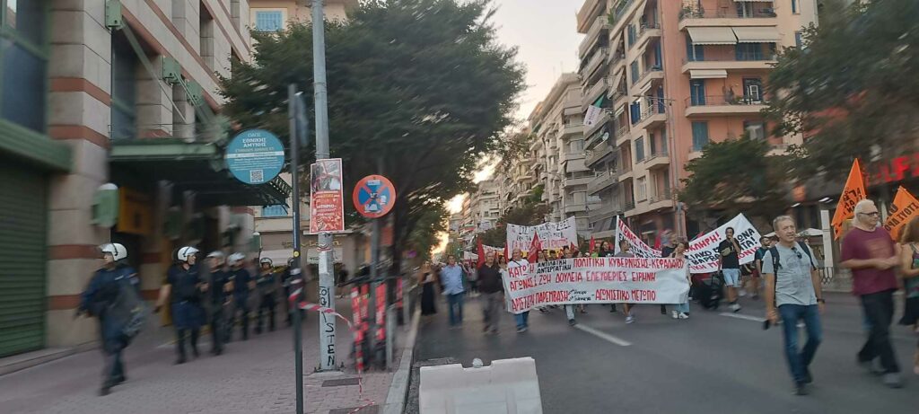 Συγκέντρωση και πορεία στην πλατεία της Καμάρας και στο Συντριβάνι πραγματοποίησαν από τη μεριά τους σωματεία, οργανώσεις της αριστεράς και του α/α χώρου και στη συνέχεια πραγματοποίησαν πορεία στο κέντρο της πόλης με κατεύθυνση προς την ΔΕΘ.