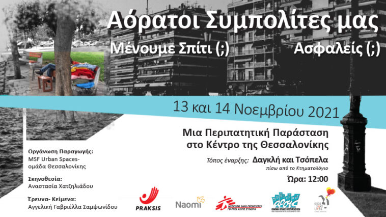 Το δίκτυο MSF Urban Spaces Θεσσαλονίκης θέτοντας τα παραπάνω ερωτήματα επιχειρεί να ανοίξει την συζήτηση διοργανώνοντας μία διαδραστική – περιπατητική παράσταση με τίτλο