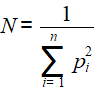 όπου Ν είναι ο ουσιαστικός αριθμός κομμάτων, n ο αριθμός των κομμάτων και pi το ποσοστό του κάθε κόμματος. Επειδή τα ποσοστά των κομμάτων είναι μικρότερα της μονάδας η ύψωση στο τετράγωνο σημαίνει ότι η επίδραση μειώνεται ραγδαία όσο πέφτουν τα ποσοστά των κομμάτων, π.χ. ένα ποσοστό 10% προσθέτει 0,1 Χ 0,1 = 0,01, ενώ αν κάποιο κόμμα πάρει 1% προσθέτει 0,0001.