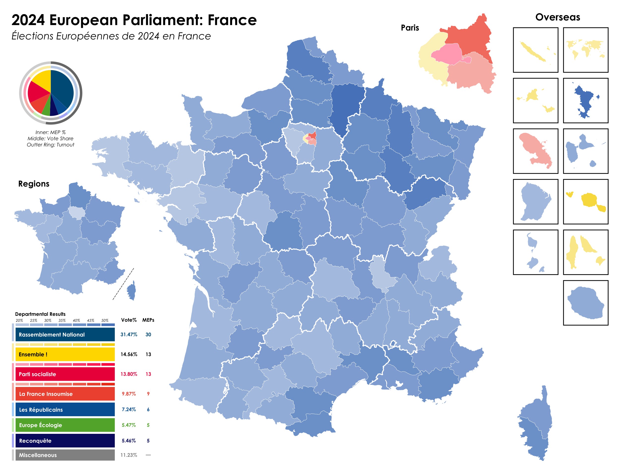 | Εθνική Συσπείρωση (RN) | 31,37% | 30 | Patriots |
