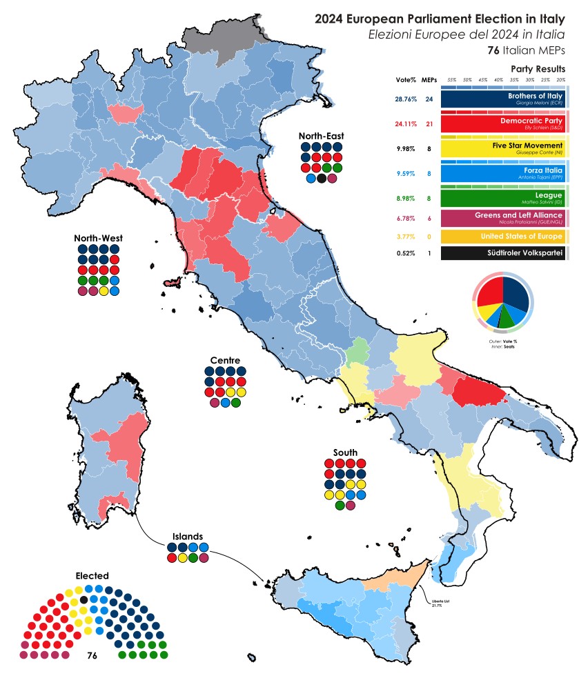 | Αδέλφια της Ιταλίας (FdI) | 28.75% | 24 | ECR |