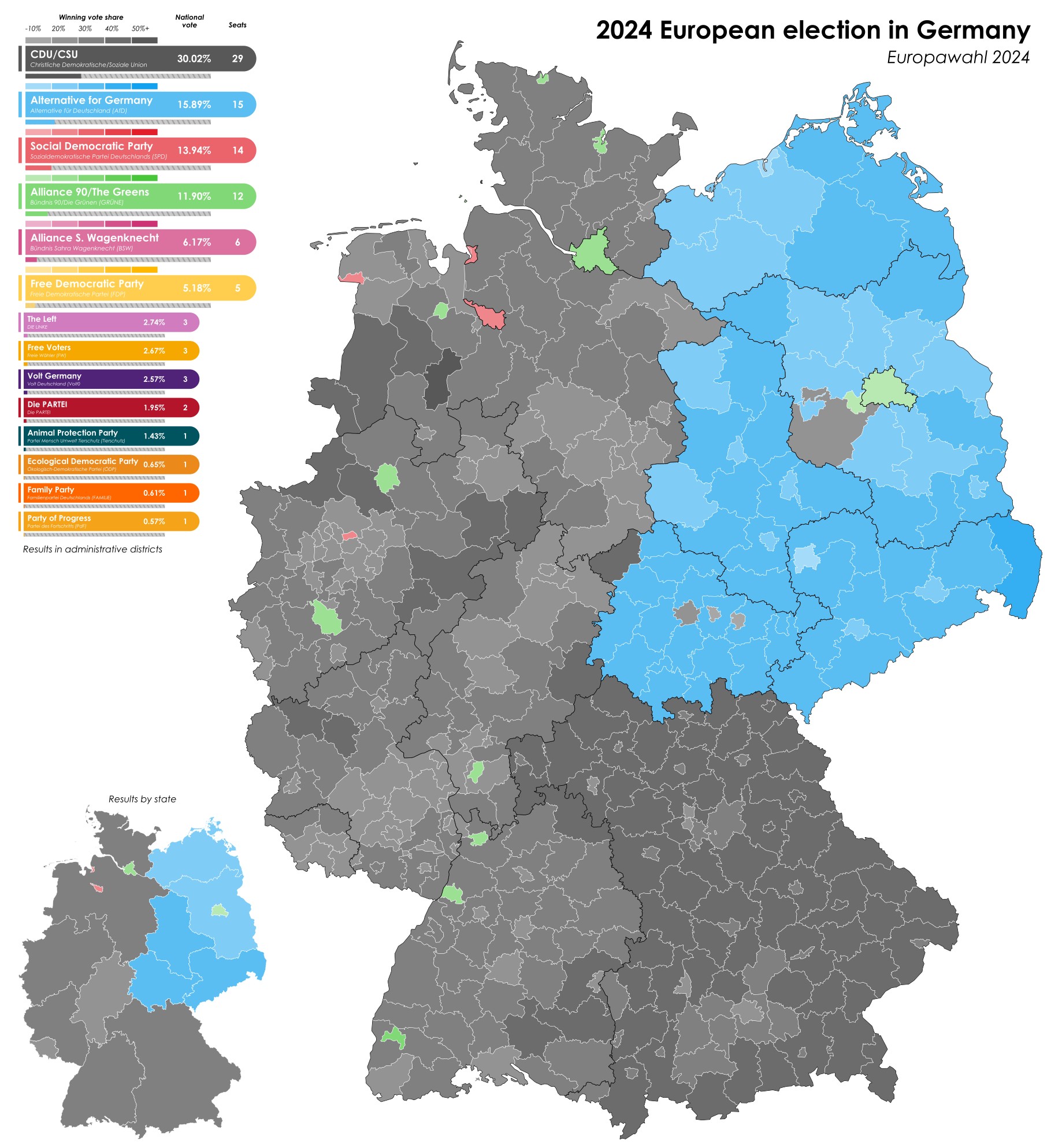 | Εναλλακτική για τη Γερμανία (AfD) | 15.90% | 14/1 | ESN/ΝΙ |