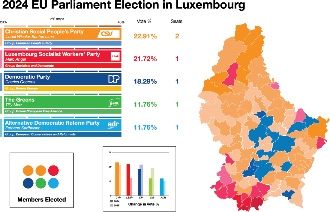 | Οι Πράσινοι (Déi Gréng/Les Verts) | 11,76% | 1 | Greens |