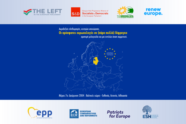 Επίσης, το καινούργιο κόμμα Πρώτα η Λεττονία που με 6,16% εκλέγει έναν ευρωβουλευτή εντάχθηκε στους Patriots. Στο Ευρωπαϊκό Χριστιανικό Πολιτικό Κίνημα ανήκει το επίσης νεότευκτο Κυρίαρχη Εξουσία, που δεν κέρδισε έδρα παίρνοντας 2,62%. Προηγουμένως το κόμμα αυτό λεγόταν Νόμος, Υπευθυνότητα, Τάξη θυμίζοντας τον τίτλο του Νόμος & Δικαιοσύνη στη γειτονική Πολωνία (το οποίο συμμετέχει στους ECR και σ’ αυτές τις εκλογές συνεργάστηκε μ’ ένα κόμμα με τον τίτλο Κυρίαρχη Πολωνία), οπότε εντάσσουμε κι αυτό το κόμμα στον ακροδεξιό χώρο. Στη Λιθουανία, τώρα, έχουμε δύο κόμματα που συνεισφέρουν στους ECR τη μία έδρα που κερδίζει το καθένα. Πρόκειται για την Ένωση Λιθουανών Αγροτών και Πράσινων που ήρθε τρίτη με 9,13%, αλλά έχασε τη δεύτερη έδρα που κατείχε και την Εκλογική Δράση Πολωνών στη Λιθουανία–Συμμαχία Χριστιανικών Οικογενειών που πήρε 5,78%. Εδώ υπάρχει κι η Ένωση Λαού και Δικαιοσύνης (Κεντρώοι, Εθνικιστές) που με 5,45% βγάζουν μια έδρα και εντάσσονται στην ESN, τους ταιριάζει μάλλον γάντι ο χαρακτηρισμός “ακροκεντρώοι”. Στην ίδια ιδεολογική κατεύθυνση θα εντάξουμε και την Εθνική Συμμαχία, που με 3,79% δεν εξέλεξε μέλος στο ΕΚ, γιατί πέρα από το όνομα, διακρίνεται για την αντί-ΛΟΑΤ ατζέντα της (για την οποία την έχει συγχαρεί ο Βίκτορ Όρμπαν) και τις αντιμεταναστευτικές της θέσεις. Τέλος, το Συντηρητικό Λαϊκό Κόμμα της Εσθονίας με 14,90% βγάζει τη μία έδρα των ECR σ’ αυτή τη χώρα.