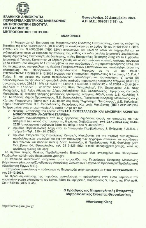 Πρόκειται για τις τελευταίες εξελίξεις που αφορούν την πρόθεση της εταιρείας Metlen να εγκαταστήσει το γιγαντιαίο φωτοβολταϊκό πάρκο στην περιοχή του Ξηροχωρίου – Ν. Μεσημβρίας του Δήμου Χαλκηδόνας έκτασης σχεδόν 4.000 στρεμμάτων. Η εταιρεία είχε αρχικά υποβάλει τον φάκελο αδειοδότησης το 2021 και το 2022, τεμαχίζοντας την έκταση σε μικρότερα τμήματα, και κατάφερε να λάβει αδειοδότηση από την Περιφέρεια Κεντρικής Μακεδονίας εν αγνοία των κατοίκων.