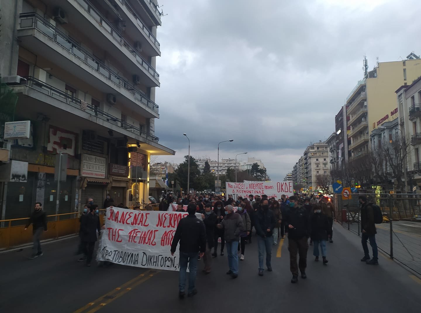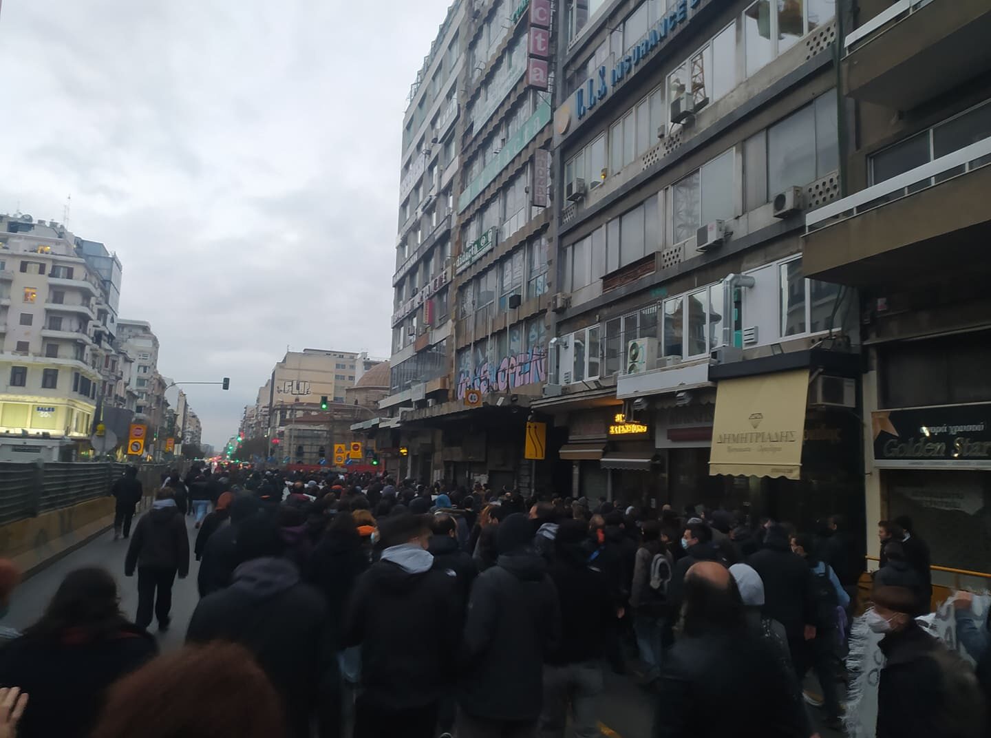 Εκατοντάδες άτομα διαδήλωσαν και σήμερα στη Θεσσαλονίκη σε ένδειξη αλληλεγγύης στον Δ. Κουφοντίνα, ο οποίος διανύει σήμερα την 61η μέρα απεργία πείνας.
