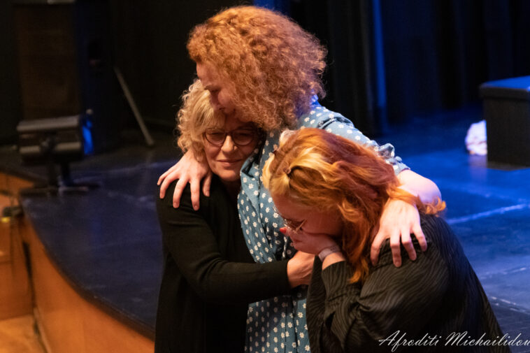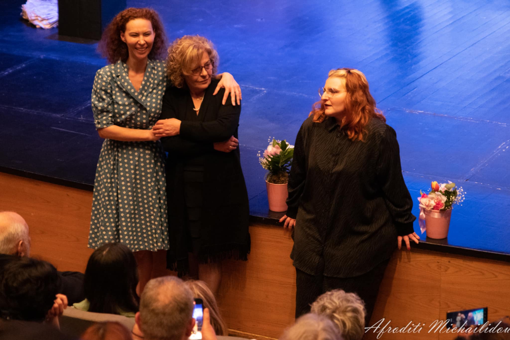 Η πρεμιέρα στο θέατρο Αυλαία φυσικά ήταν sold out. Παρούσα ήταν η Μάγδα μας και η Δήμητρα, ακόμη μια φορά. Η Δώρα μάς είπε την ιστορία πώς από τα τετράδια της Μάγδας γεννήθηκε η ιδέα του έργου και μετά μοιραστήκαμε δάκρυα και χαμόγελα. Και αγκαλιές, από χέρια που έτρεμαν. Έτρεμαν από συγκίνηση, από αγάπη, αλληλεγγύη και από συνείδηση του ζόφου μέσα στον οποίο οι μέρες μας έχουν βυθιστεί. Η Μάγδα βγήκε πάλι μπροστά. Μας κάλεσε να είμαστε όλοι «ένα». Εκφράστηκε με ευγνωμοσύνη για τα κορίτσια που επέλεξαν τη σωστή πλευρά της ιστορίας και κάλεσε όλους και όλες να κάνουμε το ίδιο σε κάθε αγώνα, όπως στο ναυάγιο – έγκλημα της Πύλου.