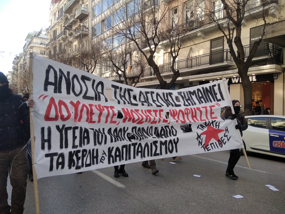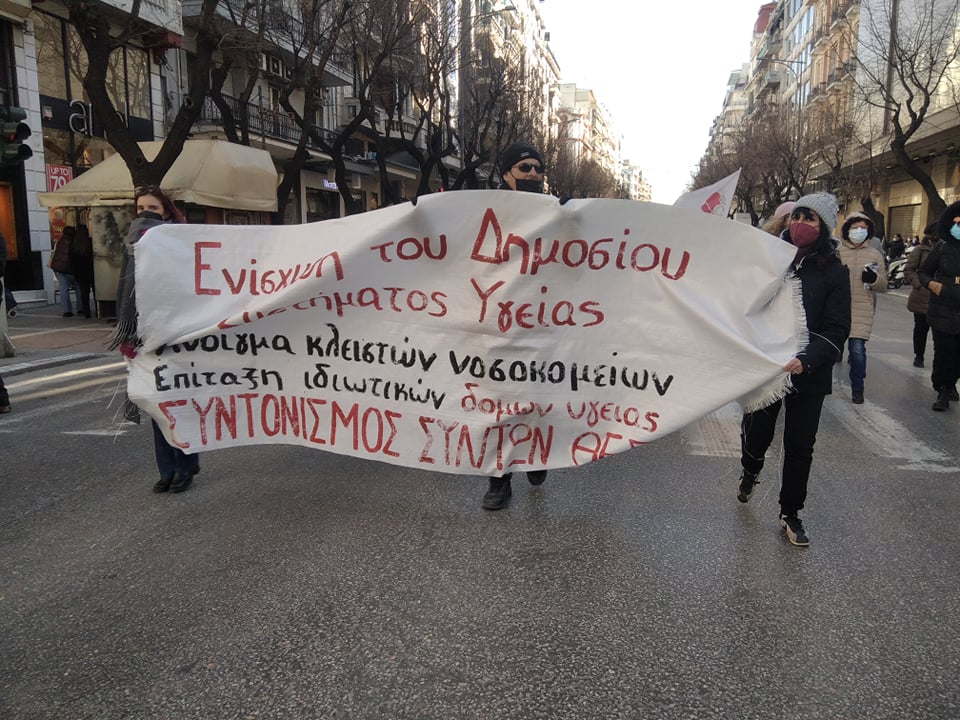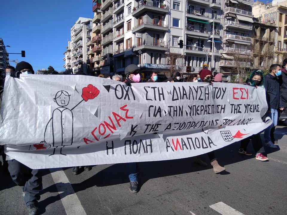 Σωματεία, φοιτητικοί σύλλογοι, υγειονομικοί και οργανώσεις της αριστεράς και του αντιεξουσιαστικού χώρου διαδήλωσαν σε κεντρικούς δρόμους της πόλης ζητώντας υγεία χωρίς αποκλεισμούς.