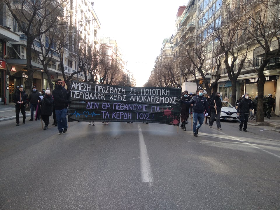 Συνθήματα όπως «Όχι στου θανάτου την πολιτική, ενισχύστε όλοι το ΕΣΥ», «Στη μνήμη των θυμάτων της πανδημίας, αξίζει η εξέγερση της κοινωνίας», μαζί με το αίτημα του Κοινωνικού Ιατρείου Αλληλεγγύης και δεκάδων άλλων συλλογικοτήτων να ανοίξει το εγκαταλελειμμένο -εδώ και οχτώ χρόνια- «Λοιμωδών», ηχούσαν δυνατά από τα μπλοκ των διαδηλωτών-τριών που παρά το κρύο κατέβηκαν στο δρόμο υπενθυμίζοντας τα τραγικά αποτελέσματα της κρατικής διαχείρισης της πανδημίας.