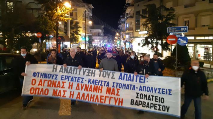 Πορεία στους κεντρικούς δρόμους της Νάουσας πραγματοποίησαν εχθές, Πέμπτη 10 Φεβρουαρίου, εργαζόμενοι στην «Ευρωπαϊκή Νηματουργία Βαρβαρέσος ΑΕ».