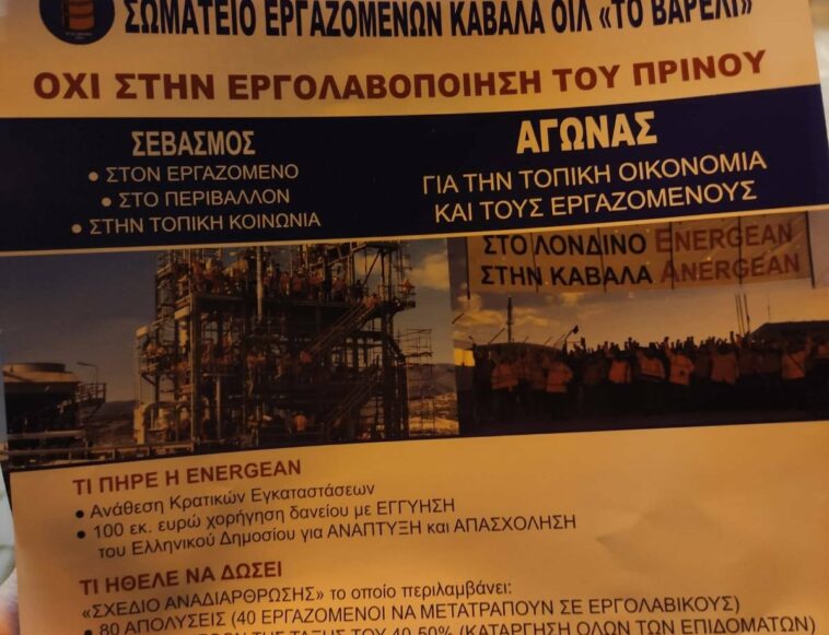 Οι εργαζόμενοι βρίσκονται σε επίσχεση εργασίας – πάνω από 200, ουσιαστικά το σύνολό τους- εδώ και δυο μήνες, ζητώντας από την εταιρεία να εγγυηθεί την ασφαλή λειτουργία των εγκαταστάσεων στον Πρίνο. Παρά την πρόσκληση του σωματείου σε διάλογο, μεταξύ εργαζόμενων και εταιρείας έχει κοπεί κάθε δίαυλος επικοινωνίας, ιδιαίτερα μετά την αστυνομική εισβολή στις εγκαταστάσεις στις 21 Δεκεμβρίου για τη βίαιη αποπομπή των εργαζόμενων από τον χώρο. Στο πλευρό των εργαζομένων έχουν ταχθεί όλοι οι φορείς της πόλης και της ευρύτερης περιοχής, συμπεριλαμβανομένου και του δήμου Καβάλας. Ωστόσο, η εταιρεία, ενώ εκκρεμούν εκατέρωθεν αγωγές και μηνύσεις, έχει προχωρήσει σε δημοσίευση αγγελίας για προσλήψεις, στην οποία δεν είναι σαφές πόσοι έχουν ανταποκριθεί.