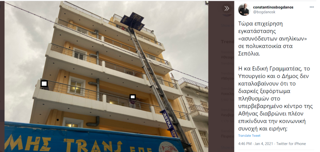 «Τώρα επιχείρηση εγκατάστασης «ασυνόδευτων ανηλίκων» σε πολυκατοικία στα Σεπόλια.
