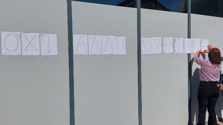 Συμβολική δράση, με σύνθημα «Όχι άλλη Κυριακή», πραγματοποίησαν σήμερα οι εργαζόμενες στην Περιφέρεια Κεντρικής Μακεδονίας, ενώ ήταν σε εξέλιξη συνάντηση του υπουργού Προστασίας του Πολίτη Μιχάλη Χρυσοχοΐδη με τον περιφερειάρχη και τους δημάρχους της Θεσσαλονίκης για την αστυνόμευση. Οι εργαζόμενες έγραψαν το σύνθημα αυτό σε φύλλα χαρτιού και τα κόλλησαν στον τοίχο για να απευθύνουν έκκληση για την προστασία των γυναικών.