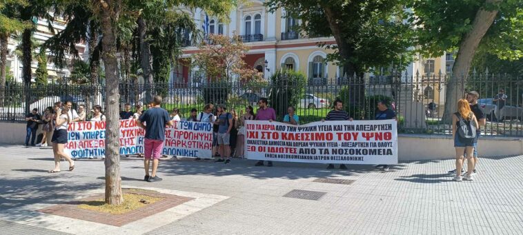 Διαμαρτυρία στο ΥΜΑΘ πραγματοποίησαν το πρωί σωματεία εργαζομένων στο ΨΝΘ, των δημόσιων δομών απεξάρτησης, η ΕΝΙΘ και φοιτητικοί σύλλογοι αντιδρώντας στο υπό διαβούλευση νομοσχέδιο για την ψυχική μεταρρύθμιση που αποτελεί κλιμάκωση στη κυβερνητική πορεία ιδιωτικοποίησης της υγείας. Ανάμεσα σε πολλά, με το νομοσχέδιο καταργούνται τα 2 από τα 3 εναπομείναντα Ειδικά Ψυχιατρικά Νοσοκομεία (ΨΝΑ και ΨΝΘ), αφήνοντας, όπως καταγγέλλουν τα σωματεία, ακόμα περισσότερο χώρο για τις ιδιωτικές επιχειρήσεις. Ταυτόχρονα, στο στόχαστρο μπαίνει και η δωρεάν πρόληψη και η απεξάρτηση από ναρκωτικές ουσίες και αλκοόλ, καταργώντας τους εγκεκριμένους φορείς πρόληψης και θεραπείας, πολλοί εκ των οποίων εντάσσονται στο δημόσιο σύστημα Υγείας και συνενώνοντάς τους σε έναν υδροκέφαλο Οργανισμό.