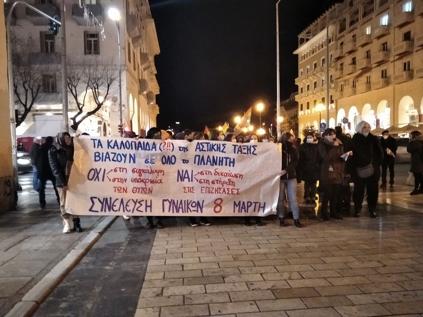 Με αίτημα να αποδοθεί δικαιοσύνη στο πρόσφατο περιστατικό βιασμού στη Θεσσαλονίκη ολοκληρώθηκε το απόγευμα της Δευτέρας συγκέντρωση αλληλεγγύης στην 24χρονη που κατήγγειλε τον βιασμό της παραμονή της Πρωτοχρονιάς. Φεμινιστικές συλλογικότητες, όπως η «Συνέλευση Γυναικών 8 Μάρτη», η «Τσουκνίδα» και η συλλογικότητα «Μαχητικές και Ελεύθερες» απηύθυναν το αρχικό κάλεσμα στο οποίο ανταποκρίθηκαν πολιτικές συλλογικότητες και οργανώσεις της αριστεράς και του αντιεξιουσιαστικού χώρου.