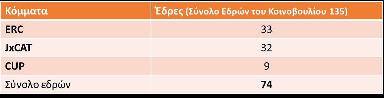 Πίνακας 2: 1ο σενάριο σχηματισμού κυβέρνησης με τα κόμματα υπέρ της ανεξαρτησίας