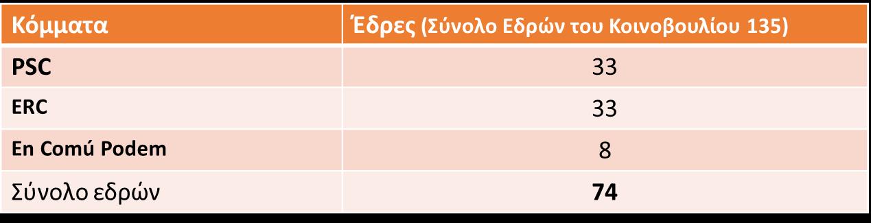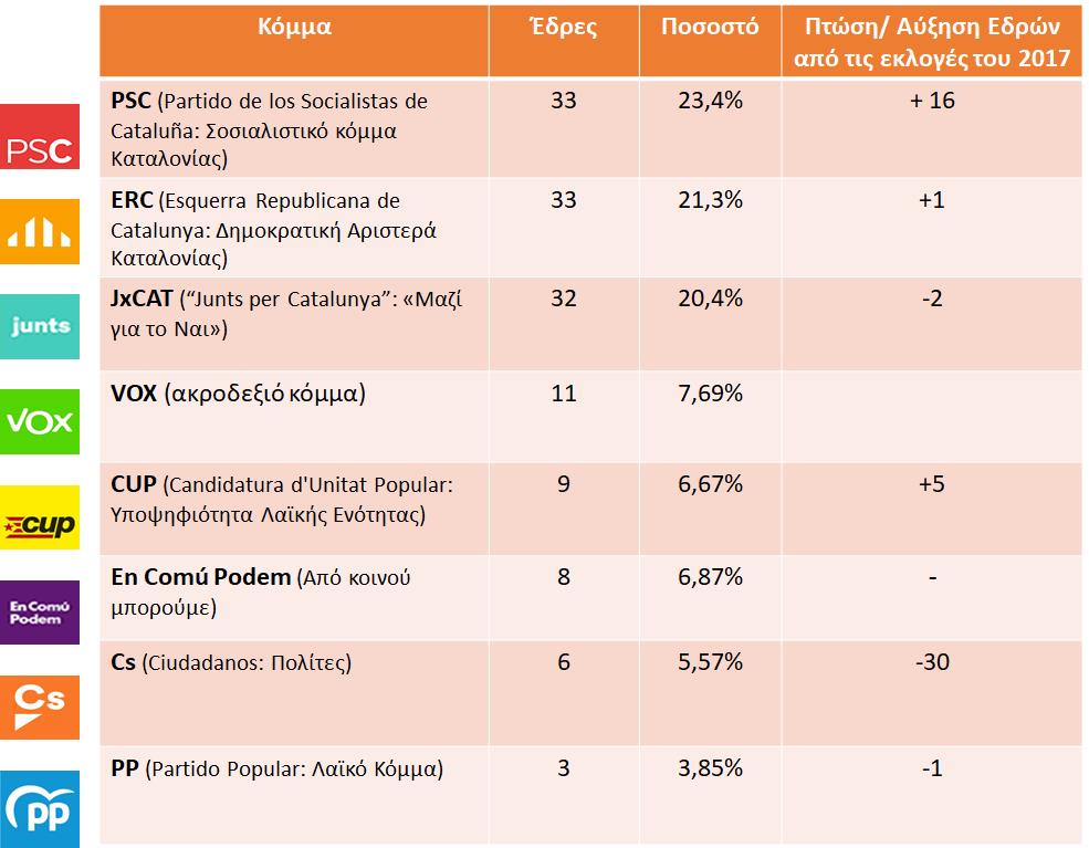 Πίνακας 1: Αποτελέσματα Καταλανικών Εκλογών της 14ης Φεβρουαρίου 2021