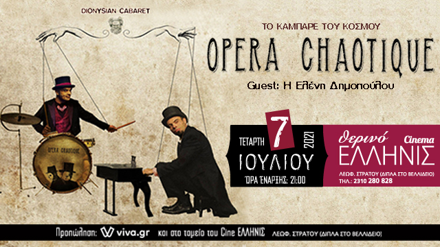 Με αναπάντεχα ανατρεπτικό χιούμορ, άκρως σουρεαλιστική φαντασία και εκρηκτικές μουσικές αλχημείες, οι Opera Chaotique έχουν καταφέρει στα δέκα χρόνια παρουσίας τους στην ελληνική σκηνή να είναι ένα απολύτως μοναδικό φαινόμενο του μουσικού στερεώματος. Με την γνωστή αισθητική που τους χαρακτηρίζει, οι Tenorman & Voodoo Drummer αναμειγνύουν διαφορετικά είδη τέχνης μεταξύ τους. Μεγάλες επιτυχίες από την όπερα, το μιούζικαλ ,την τζαζ και τον κινηματογράφο , την ποπ και το ροκ, αναμειγνύονται με τις αγαπημένες μελωδίες Ελλήνων συνθετών ενώ θεατρικοί αυτοσχεδιασμοί και τρέλα πειραγμένες διασκευές δημιουργούν ένα ανεπανάληπτο show.