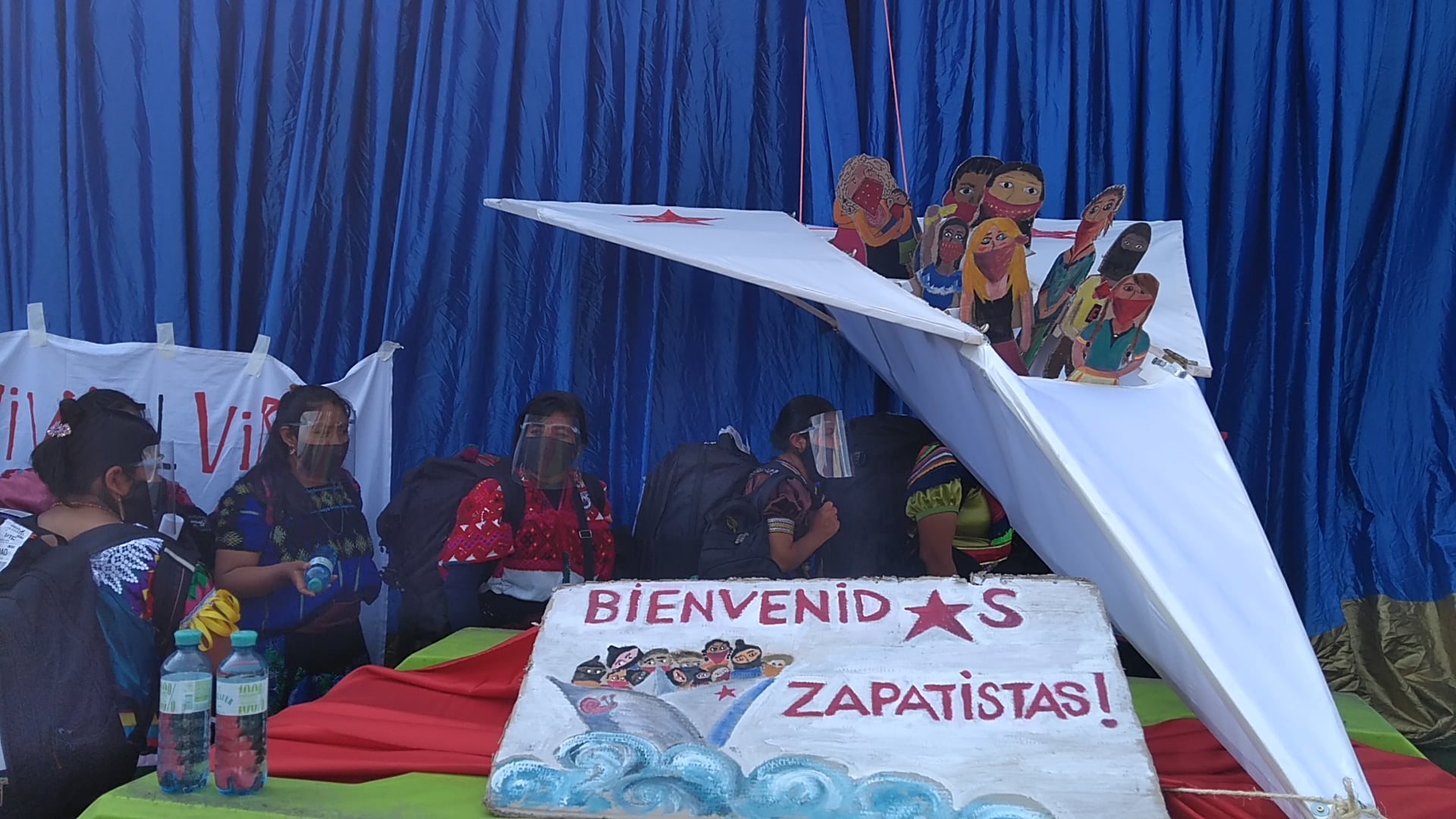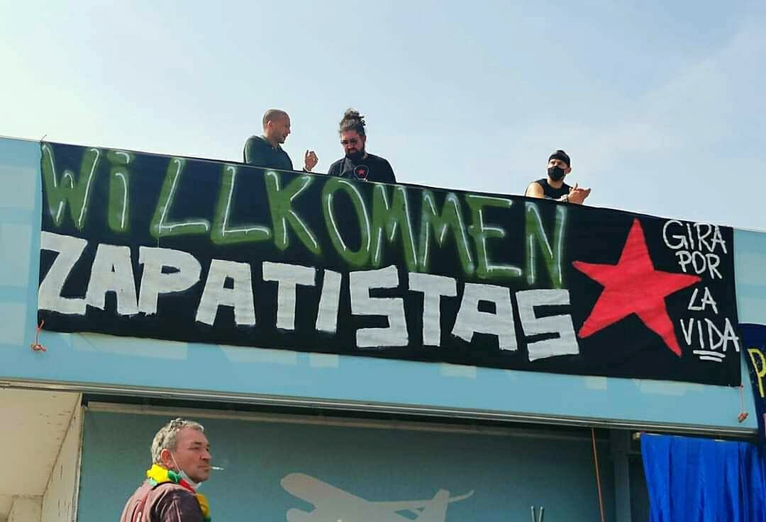 Αλληλέγγυοι-ες με υποδέχτηκαν τραγούδια και συνθήματα την μεγάλη αντιπροσωπεία των ζαπατίστας που αποτελείται από 28 ομάδες «Ακρόασης και Λόγου» (με 4 ή 5 συντρόφισσες και συντρόφους η καθεμία), 1 ομάδα «Παιχνιδιού και Σκανταλιάς» και 1 ομάδα Συντονισμού. Οι ομάδες αυτές έχουν προσκληθεί για να επισκεφτούν 28 γωνιές της ευρωπαϊκής γεωγραφίας – και μία από αυτές τις γωνιές είναι και η ελληνική.
