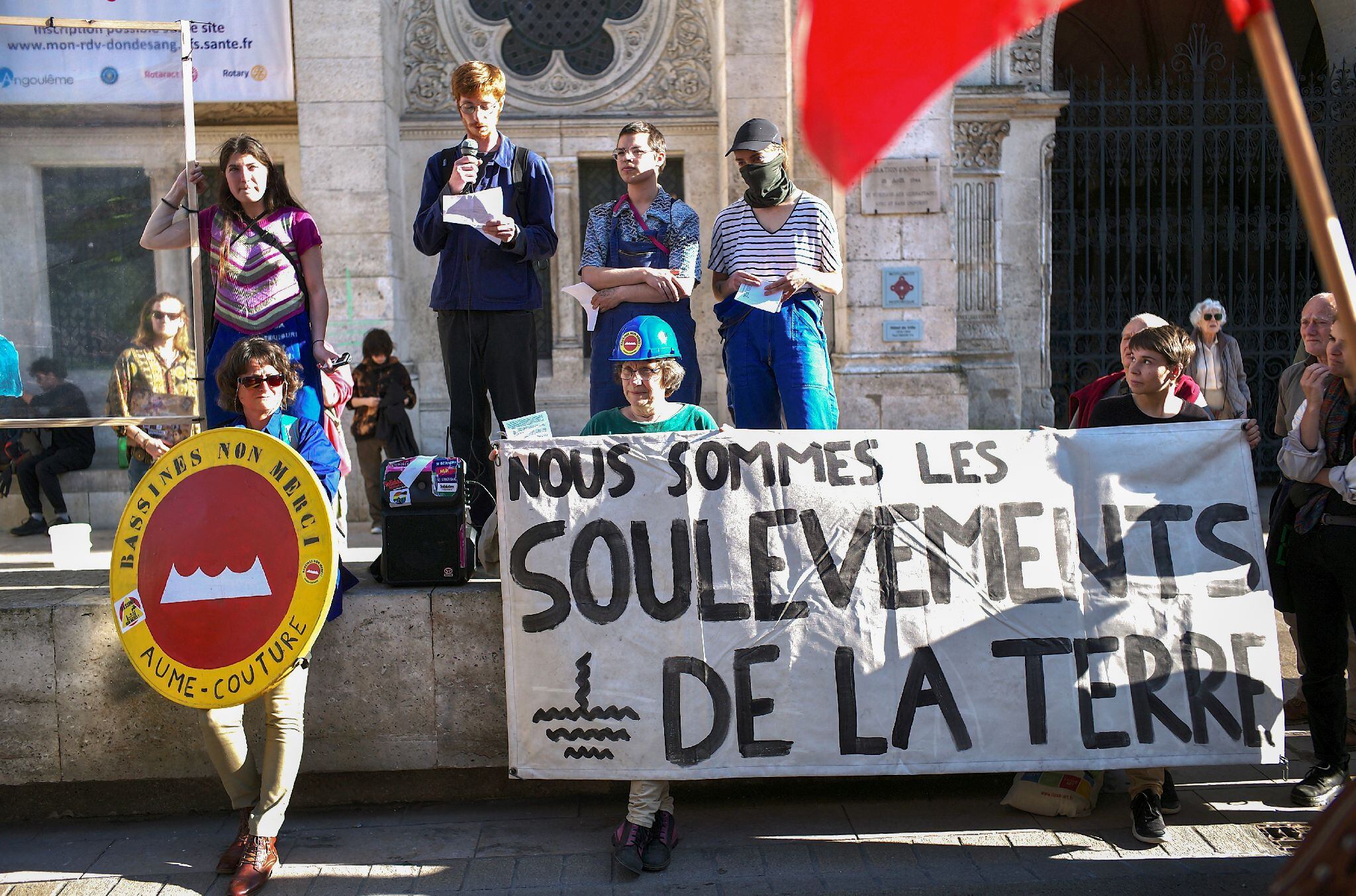 Το μεγαλύτερο μέρος της δουλειάς γίνεται από την τοπική συλλογικότητα, όπως η νομική προετοιμασία, η διοργάνωση δημόσιων συγκεντρώσεων για την ενημέρωση του πληθυσμού κ.ά. «Οι Εξεγέρσεις της Γης» ορίζουν μια ημερομηνία οργανώνοντας μια μεγάλη και μαζική δράση. Αυτή η κίνηση ρίχνει περισσότερο φως στους τοπικούς αγώνες και στο εκάστοτε megaproject που πολεμούν οι άνθρωποι στην περιοχή τους. Ένα παράδειγμα μπορεί να είναι η εθνική οδός A69, που βρίσκεται στο νότιο τμήμα της Γαλλίας, μεταξύ Τουλούζης και Καστρ. Πρόκειται για μια εθνική οδό που ως έργο ξεκίνησε πριν από πολύ καιρό, επανεκκινήθηκε πριν από λίγα χρόνια και άρχισε να κατασκευάζεται πριν από δύο. Υπάρχουν λοιπόν πολλές τοπικές οργανώσεις και συλλογικότητες που αγωνίζονται ενάντια σε αυτό το έργο εδώ και πολύ καιρό και έχουν κάνει πολλή δουλειά και ποικίλες δράσεις. Όταν όμως «Οι Εξεγέρσεις της Γης» συνεργάστηκαν με τις τοπικές συλλογικότητες για να οργανώσουν αυτή τη μαζική δράση, βοήθησαν τον αγώνα να γίνει γνωστός σε εθνικό επίπεδο και στον κόσμο των μέσων ενημέρωσης. Αυτό είναι ένα από τα πράγματα που επιδιώκει το κίνημα: να φέρει στο προσκήνιο τοπικούς αγώνες, έτσι ώστε να μην είναι απομονωμένοι, αλλά μέρος ενός μεγαλύτερου κινήματος που συνδέει όλους αυτούς τους αγώνες. Για παράδειγμα, όσον αφορά τους αυτοκινητόδρομους, πλέον υπάρχει μια συμμαχία που ονομάζεται «La Déroute des Routes» (Η αποδρομή των δρόμων). Είναι μια συμμαχία όλων των αγώνων στη χώρα ενάντια σε οποιοδήποτε οδικό έργο ή αυτοκινητόδρομο. Και αυτή η συμμαχία ζητά το τέλος όλων αυτών των έργων, καθώς έχουμε ήδη πάρα πολύ μεγάλο οδικό δίκτυο και αυτοκινητόδρομους στη Γαλλία και δεν θέλουμε να καταστραφεί ακόμη περισσότερη γη εξαιτίας της δημιουργίας νέων.