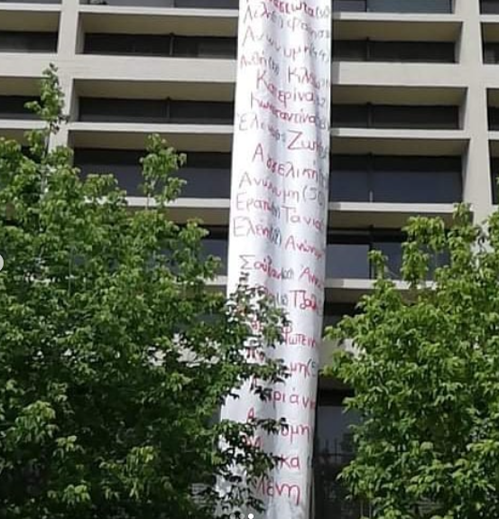 Ένα μεγάλο πανό με τα ονόματα των γυναικών που δολοφονήθηκαν από γυναικοκτόνους εγκληματίες ανήρτησε την Τετάρτη η Φοιτητική Ένωση για το Φύλο και την Ισότητα (ΦΥΛ.ΙΣ.) του Α.Π.Θ..