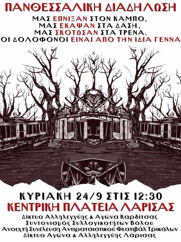 Πανθεσσαλική διαδήλωση θα πραγματοποιηθεί την Κυριακή 24/09 στις 12:30 στην Κεντρική πλατεία της Λάρισας.