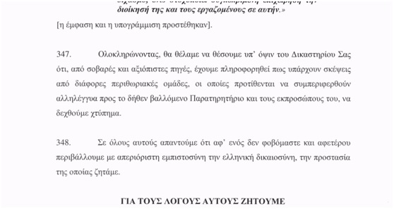 Σύμφωνα με ανακοίνωση του Παρατηρητηρίου, οι εταιρείες ΟΝΕΧ, στο κλείσιμο των προτάσεων που κατέθεσαν για το δικαστήριο της 10ης Δεκεμβρίου 2021, περιέλαβαν την παρακάτω δήλωση: