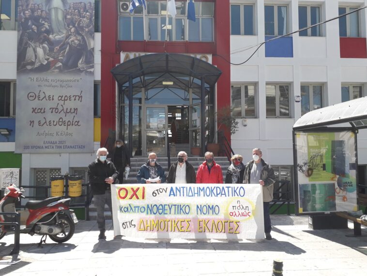 Την Τετάρτη 21 Απρίλη μέλη της ΠΟΛΗΣ ΑΛΛΙΩΣ προχώρησαν σε παρεμβάσεις διαμαρτυρίας έξω από τα δημαρχεία Συκεών και Νεάπολης ενάντια στο αντιδημοκρατικό-καλπονοθευτικό νομοσχέδιο του υπουργείου Εσωτερικών, που αφορά στις επικείμενες δημοτικές εκλογές.