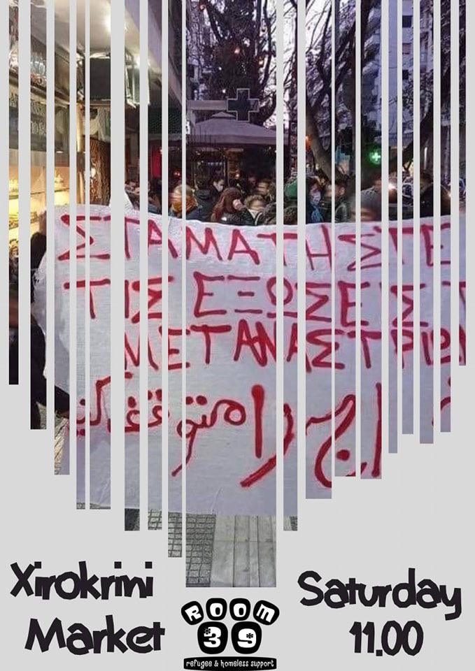 Συναντιόμαστε αυτό το Σάββατο και κάθε Σάββατο το πρωί, στη λαϊκή της Ξηροκρήνης, με τους/τις μετανάστ(ρι)ες για να οργανώσουμε μαζί τις αντιστάσεις μας».