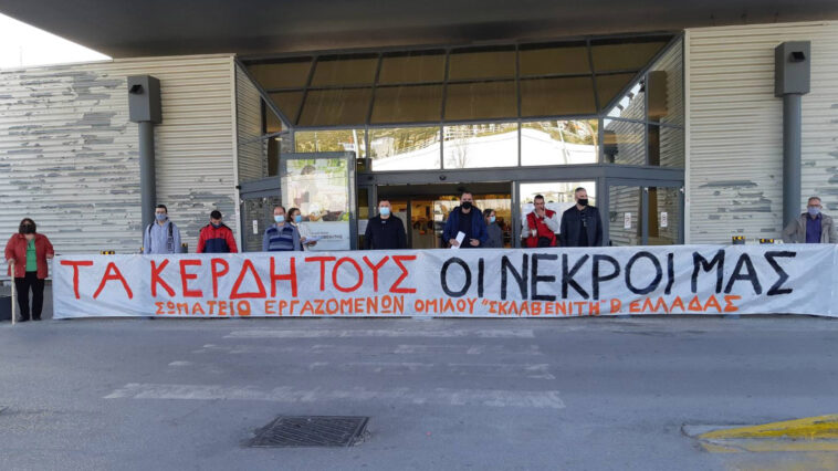 Δυναμική παρέμβαση στο κατάστημα του ομίλου «Σκλαβενίτη» στην Ευκαρπία Θεσσαλονίκης, πραγματοποίησε το απόγευμα της Δευτέρας 12 Απριλίου, το Σωματείο Εργαζομένων στις επιχειρήσεις του ομίλου στη Β. Ελλάδα, διεκδικώντας μέτρα προστασίας για τη ζωή των εργαζομένων και των οικογενειών τους.