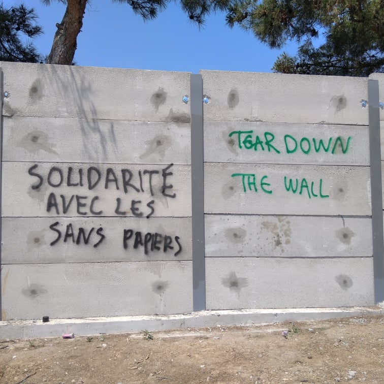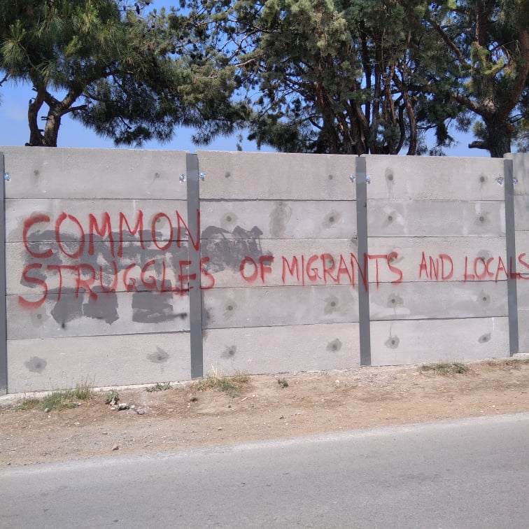 Παρέμβαση ενάντια στο τείχος που έχει μετατρέψει το καμπ των Διαβατών σε μία φυλακή πραγματοποίησαν μέλη της συλλογικότητας «Stop War on Migrants». «Αλληλεγγύη με τους/τις χωρίς χαρτιά», «Αυτό είναι μια φυλακή», «Κάτω οι φράχτες», «Ελευθερία για όλους», «Στέγη, χαρτιά, ελευθερία», «Κοινοί αγώνες ντόπιων και μεταναστών» ήταν μερικά από τα συνθήματα που γράφτηκαν στο τριών μέτρων ύψους τείχος που έχει χτιστεί γύρω από το καμπ των Διαβατών.