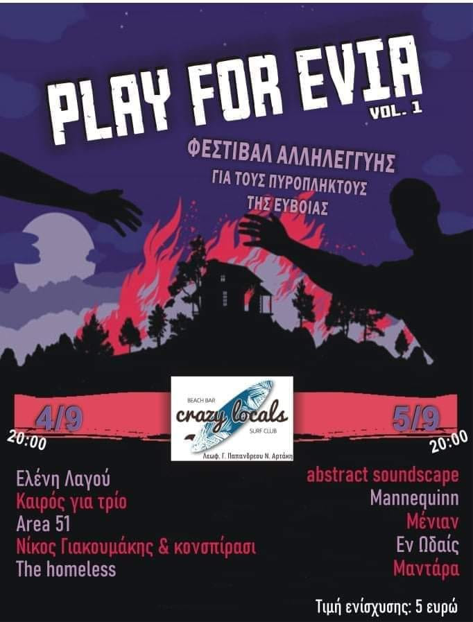 Η καταστροφική φωτιά στην Εύβοια έκαιγε για 8 ημέρες με αποτέλεσμα παραπάνω από 500.000 στρέμματα δάσους να καούν. Μαζευτήκανε, λοιπόν, να παίξουνε για την Εύβοια. Για όσους έχασαν στη φωτιά την ελπίδα για το αύριο. Για τους ρετσινάδες και τους μελισσοκόμους. Για όλους αυτούς που χρειάζονται τώρα ένα χέρι να τους σηκώσει. Ε, λοιπόν, θα έχουν πολλά χέρια. Ένα για τον καθένα τους, γιατί η αδικία ΔΕ θα περάσει!