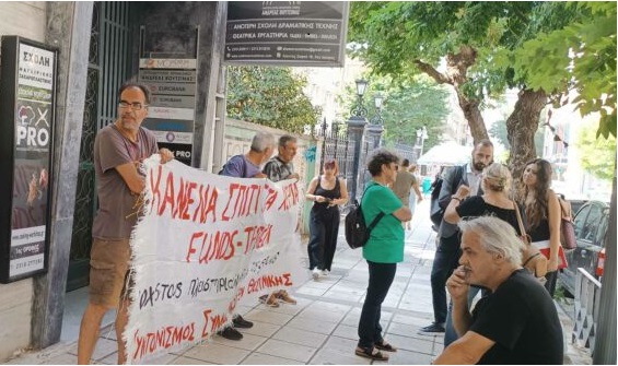 Ο Συντονισμός Συλλογικοτήτων Θεσσαλονίκης καταγγέλλει ότι «η Εθνική Τράπεζα έχει πουλήσει (κοψοχρονιά) το δάνειο σε γνωστό ιρλανδικό Fund, το οποίο εκπροσωπείται στην Ελλάδα από την “doValue”και βγαίνει σε πλειστηριασμό στις 11 του Σεπτέμβρη για “χρέος” που τα Funds, με τα ατελείωτα πανωτόκια, το ανεβάζουν στα 88.000 ευρώ!!!».